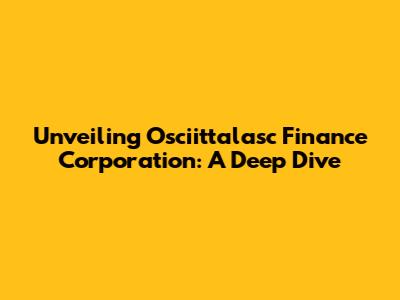 Unveiling Osciittalasc Finance Corporation: A Deep Dive