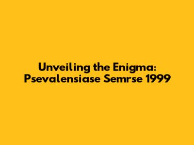 Unveiling The Enigma: Psevalensiase Semrse 1999