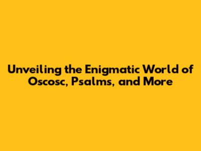 Unveiling The Enigmatic World Of Oscosc, Psalms, And More