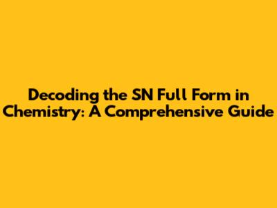 Unveiling The Mystery: SN Full Form In Chemistry