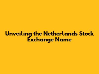 Unveiling The Netherlands Stock Exchange Name
