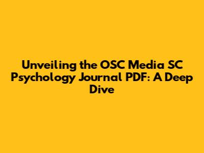 Unveiling The OSC Media SC Psychology Journal PDF: A Deep Dive