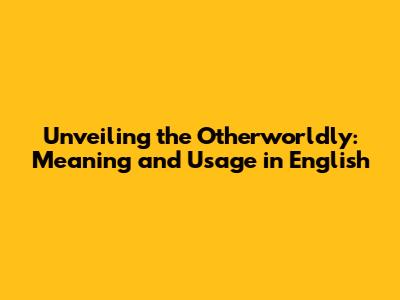 Unveiling The Otherworldly: Meaning And Usage In English