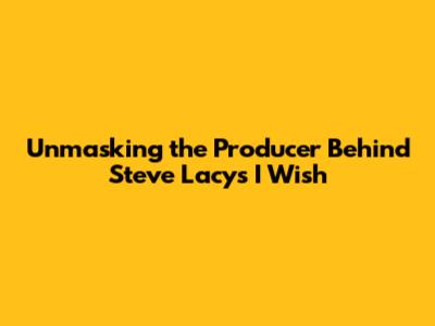 Unveiling The Producer Of Steve Lacy's Iconic Track 'I Wish'