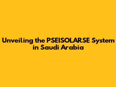 Unveiling The PSEISOLARSE System In Saudi Arabia
