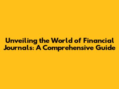 Unveiling The World Of Financial Journals: A Comprehensive Guide