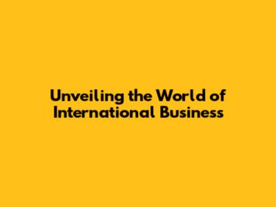 Unveiling The World Of International Business
