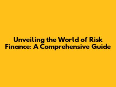 Unveiling The World Of Risk Finance: A Comprehensive Guide