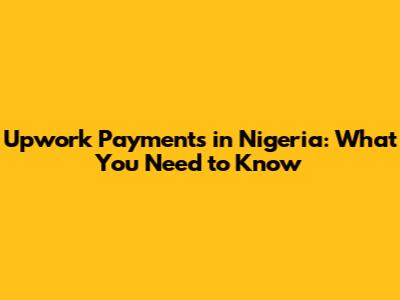 Upwork Payments In Nigeria: What You Need To Know