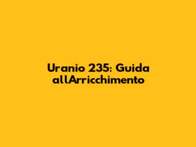 Uranio 235: Guida All'Arricchimento