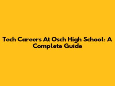 Tech Careers At Osch High School: A Complete Guide