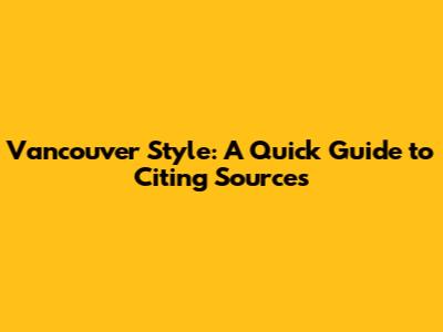 Vancouver Style: A Quick Guide To Citing Sources
