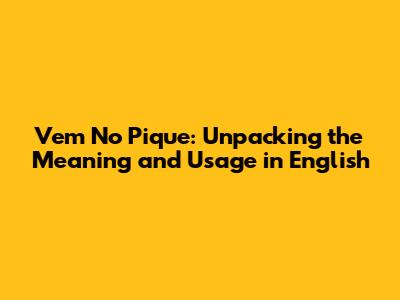 Deciphering "Vem No Pique": The Core Meaning