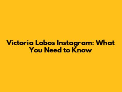 Victoria Lobo's Instagram: What You Need To Know