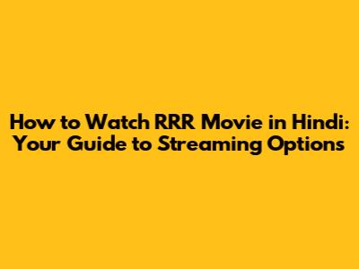 Watch RRR In Hindi: Streaming Options & More