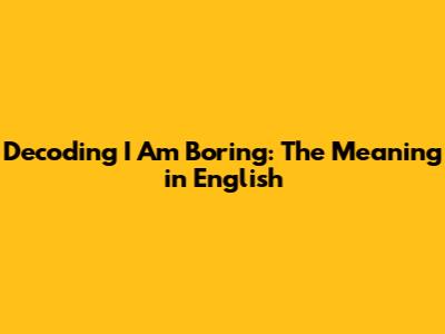 What Does 'I Am Boring' Really Mean? Decoding The Phrase