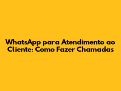 WhatsApp Para Atendimento Ao Cliente: Como Fazer Chamadas