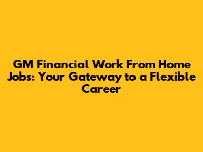 Hey guys! Are you on the hunt for flexible work opportunities? Look no further! GM Financial work from home jobs are becoming increasingly popular, offering a fantastic way to balance your career with your personal life. In this article, we'll dive deep into the world of GM Financial, exploring the types of remote positions they offer, the benefits of working from home, and how you can snag one of these coveted roles. Whether you're a seasoned professional or just starting your career, there's likely a work-from-home opportunity at GM Financial that's perfect for you. We'll cover everything from customer service roles to more specialized positions in finance and technology. So, buckle up and get ready to discover how you can join the GM Financial family from the comfort of your own home!