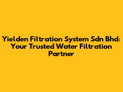 Hey there, water enthusiasts! Today, we're diving deep into the world of Yielden Filtration System Sdn Bhd, a company that's making waves in the water filtration industry. This article will be your go-to guide, covering everything from what they do to why they're a top choice for clean, pure water. So, grab a glass of your favorite beverage (preferably filtered!), and let's get started.