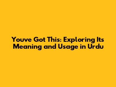 You've Got This: Understanding Its Meaning In Urdu