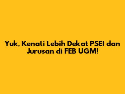 FEB UGM adalah tempat yang tepat bagi kalian yang ingin mengembangkan potensi diri dan meraih kesuksesan di dunia ekonomi dan bisnis. Dengan kurikulum yang komprehensif, dosen yang berkualitas, fasilitas yang lengkap, dan jaringan yang luas, kalian akan mendapatkan bekal yang sangat berharga untuk meraih karir yang gemilang. Baik kalian tertarik dengan ekonomi Islam melalui PSEI, atau ingin mendalami jurusan lain seperti ekonomi, akuntansi, atau manajemen, FEB UGM menawarkan banyak pilihan menarik. Jangan ragu untuk mencari informasi lebih lanjut, bertanya kepada kakak tingkat, dosen, atau alumni, dan persiapkan diri kalian sebaik mungkin. Dengan semangat belajar yang tinggi, kerja keras, dan dukungan dari orang-orang terdekat, kalian pasti bisa meraih impian kalian di FEB UGM. Jadi, tunggu apa lagi? Segera persiapkan diri kalian untuk menjadi bagian dari keluarga besar FEB UGM! Selamat berjuang, guys! Semoga sukses selalu! Dan jangan lupa, teruslah semangat belajar dan meraih impian kalian!