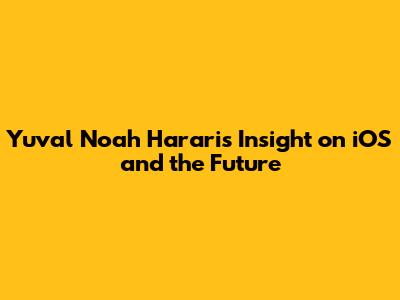 Yuval Noah Harari's Insight On IOS And The Future